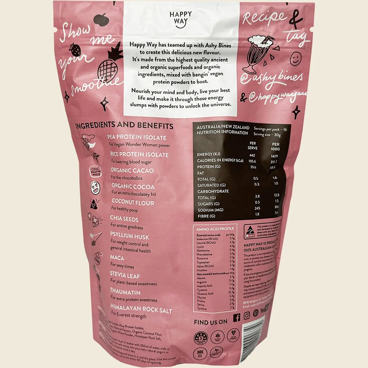 Happy Way Ashy Bines Vegan Protein Powder - Triple Choc Fudge - 500g