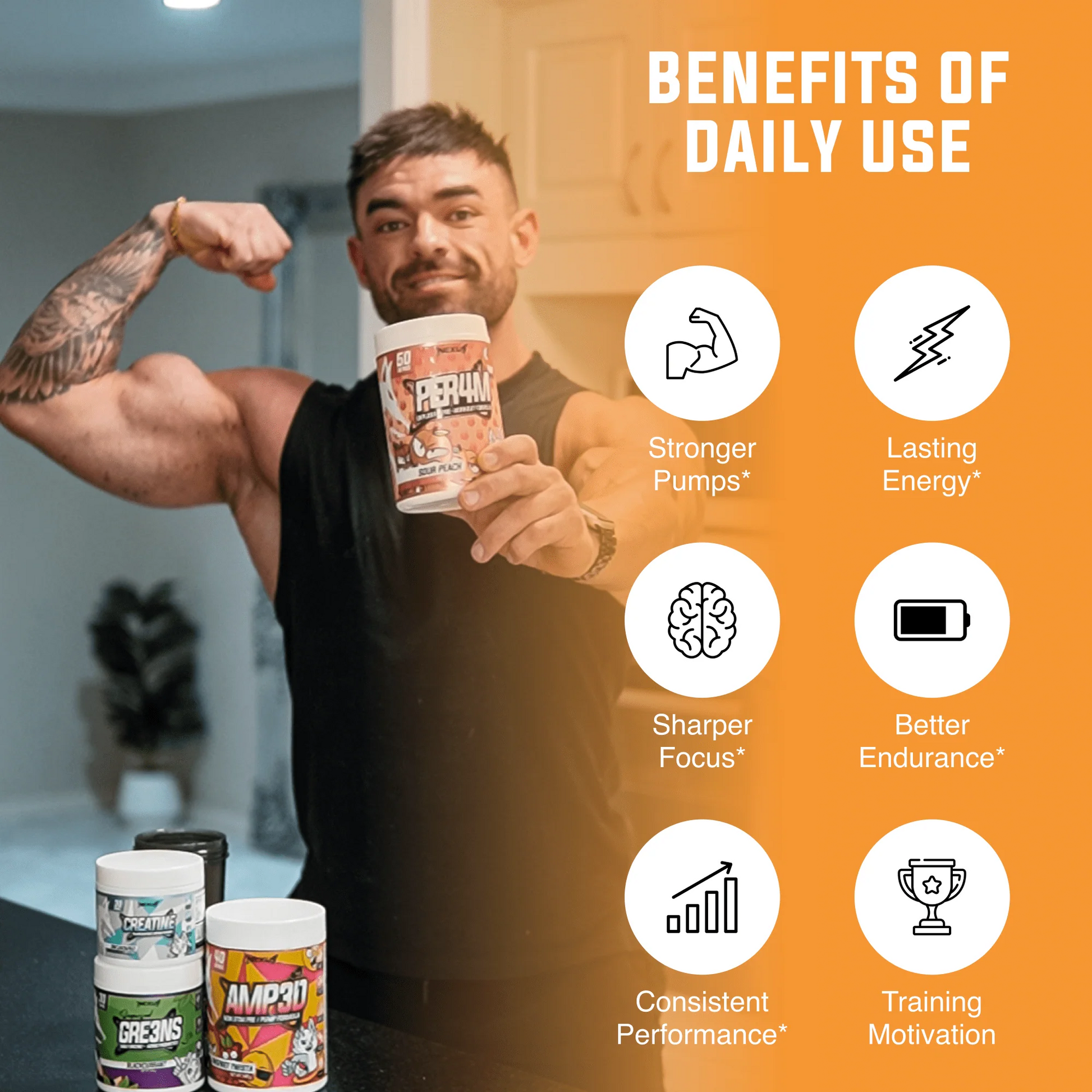 This is a 400g (50 serves) of Nexus PER4M Pre-Workout Sour Peach flavour. Take your training to the next level with PER4M Pre-Workout by Nexus Nutrition. This high-stim, performance-driven formula combines 17 premium ingredients to deliver explosive energy, laser-sharp focus and powerful muscle pumps.